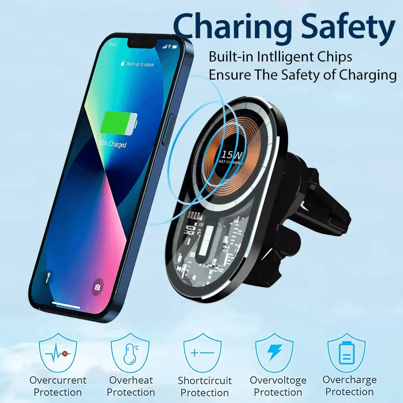 / Popular Transparent Looking Magnetic Car Phone Stand Wireless Charger