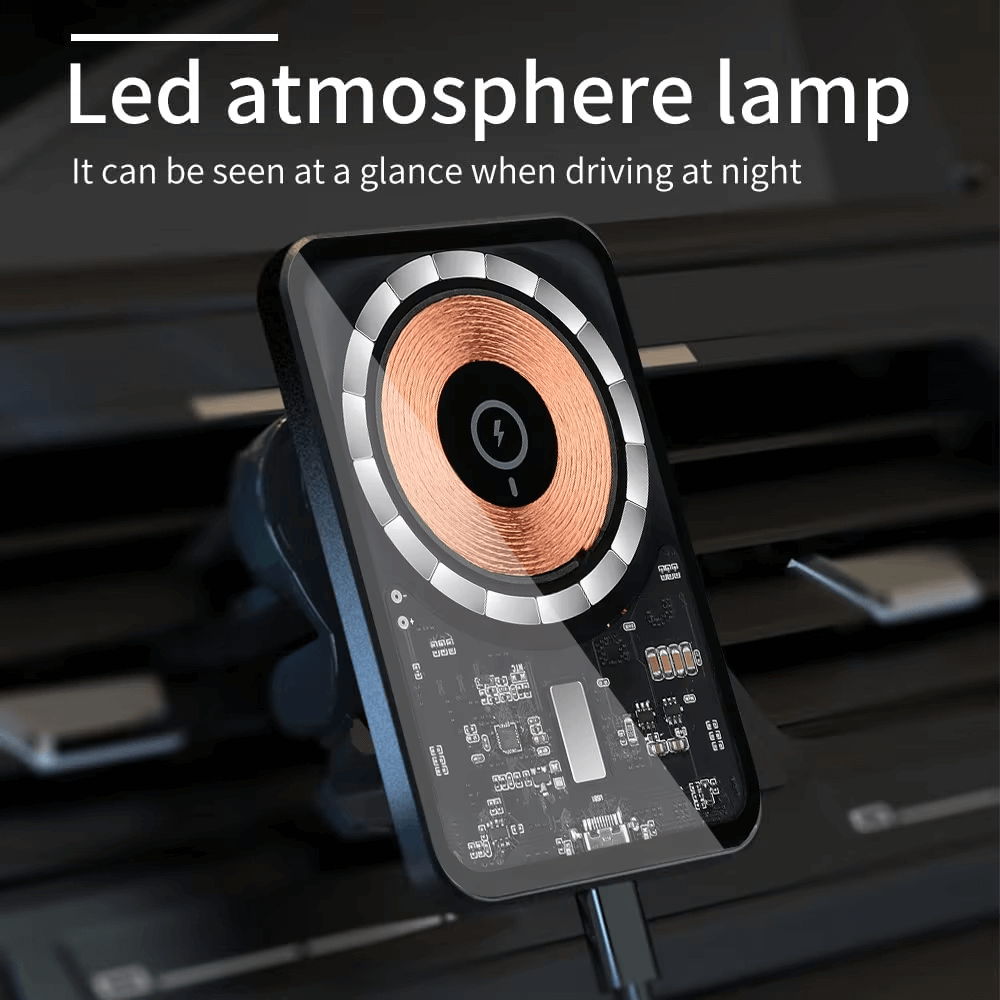 Transparent Stable 15W Type C USB 8 Pin Port Quick Charging Automatic Car Mobile Holder Wireless Charger