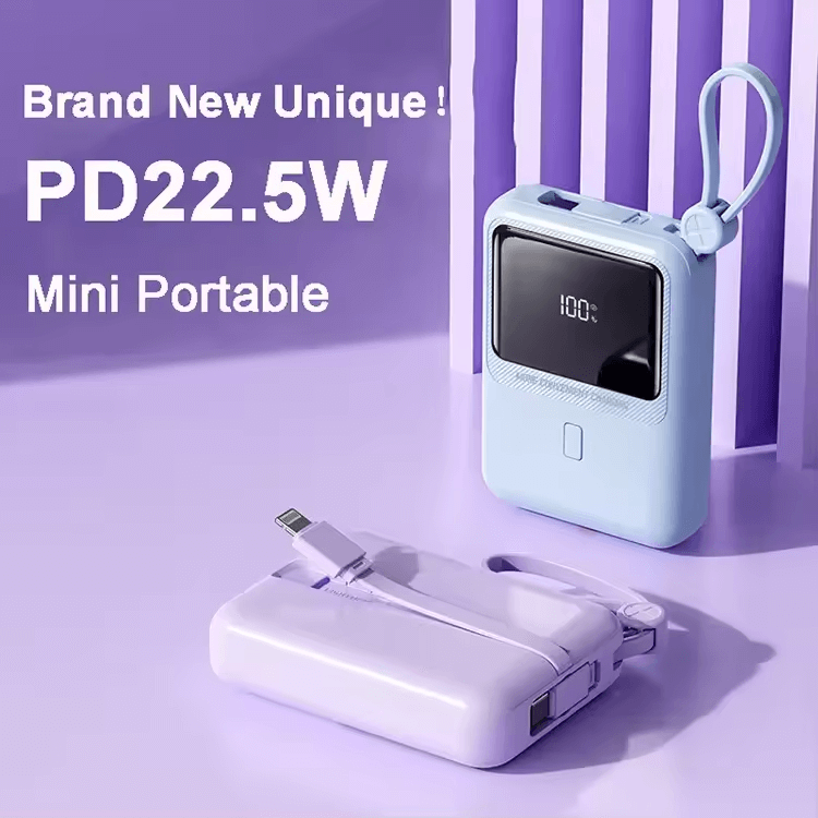 Quick Charging 10000mAh Power Banks Cables built-in Small Power Bank for outdoors