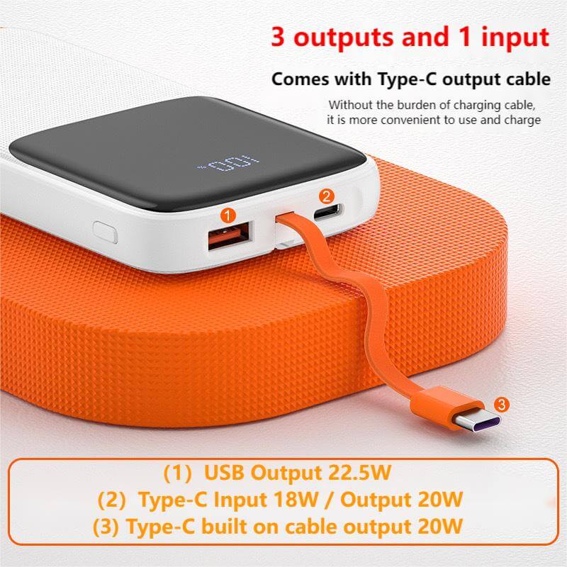 PD22.5w Power bank Fast Charging With Digital Display Built In Cables power bank For Smart Phone